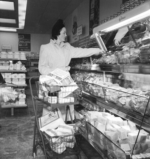 Konsum snabbköp, affärsinteriör, en kvinna.