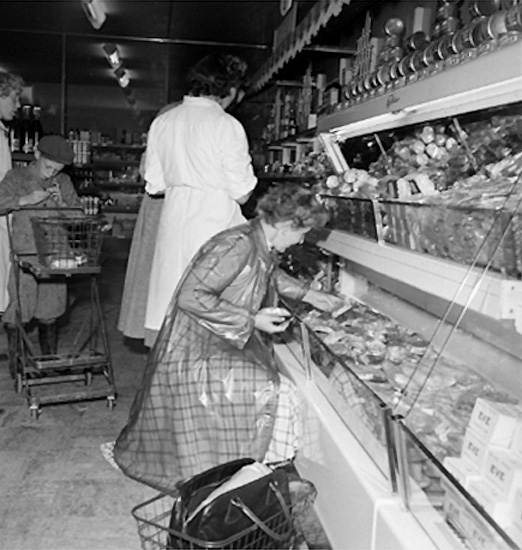 Konsum snabbköp, affärsinteriör, kunder och personal.