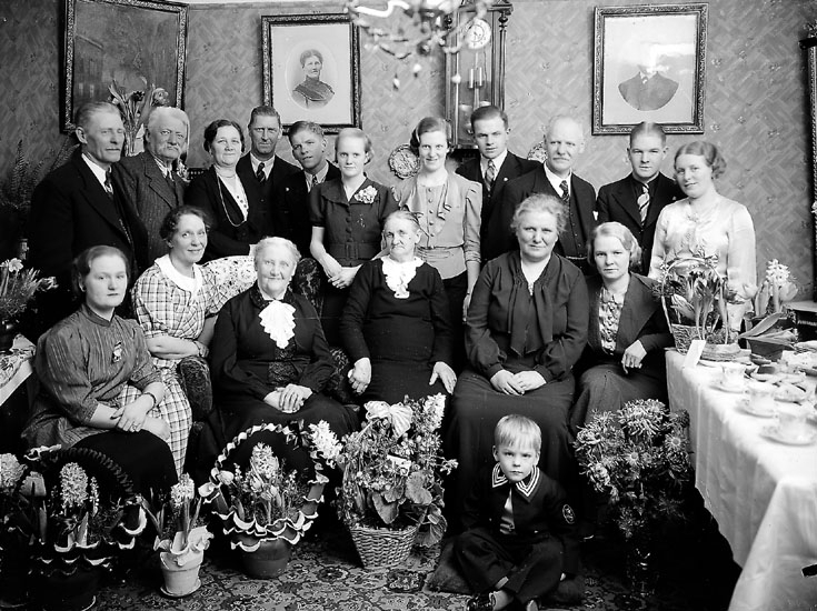 Rumsinteriör, släktgrupp 18 personer.