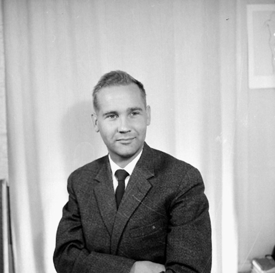 Titel: En man, bröstbild. Bengt Blomkvist, kamrer på Sedells Reklam.