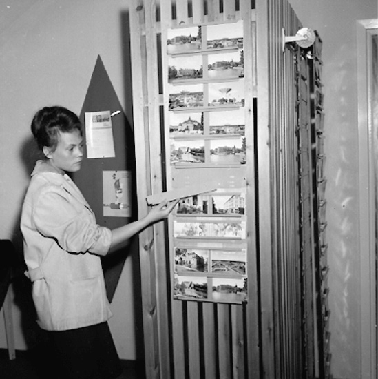 Titel: Sedells Reklam, kontorsinteriör, en kvinna.