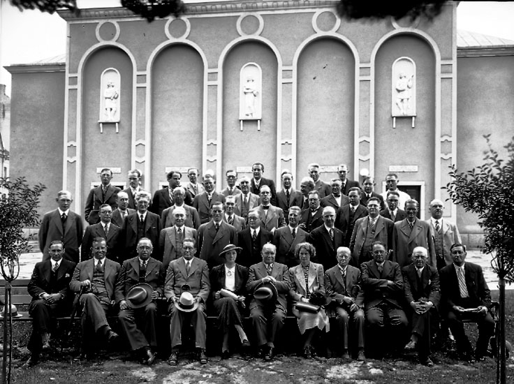 Journalistgrupp, 42 personer framför Konserthuset.