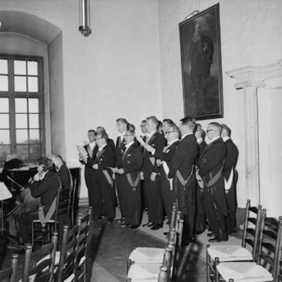 Titel: Svarta Örns 15-årsjubileum, interiör, grupp.