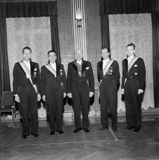 Svarta Örns ordens styrande råd, interiör, fem män.