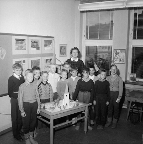 Hagaskolan, klassrumsinteriör, skolbarn med lärarinna.