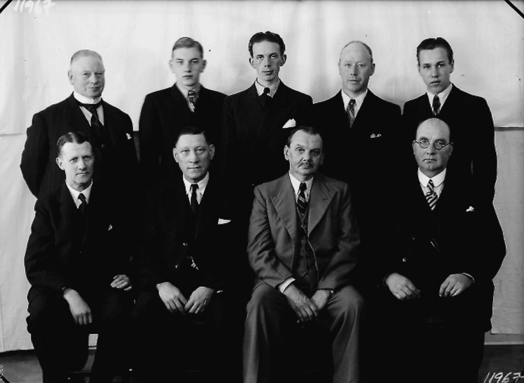 Typografgrupp, nio herrar.