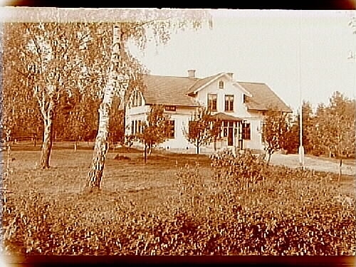 Ökna skolhus, en och en halvvånings skolbyggnad med frontespis och glasad förstebro.