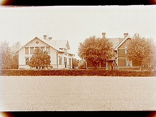 Almbro skola, en och en halvvånings skolbyggnad. En och halvvånings vinkelbyggt lärarebostad.