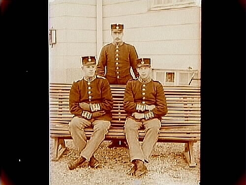 Tre soldater på en bänk.