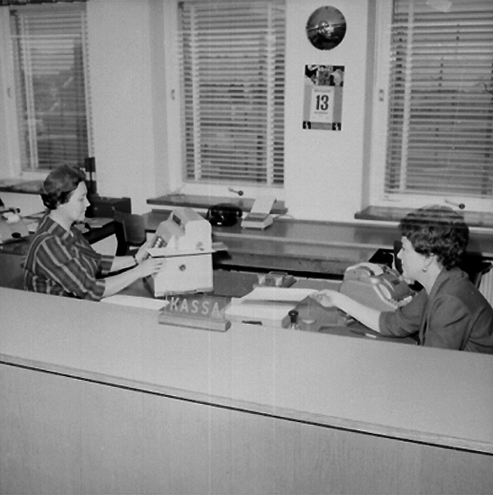 Normans bilfirma, kontorsinteriör, två kvinnor.
