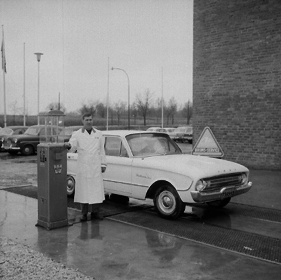 Ate Lockheed broms-service, bilverkstad, exteriör, en man.