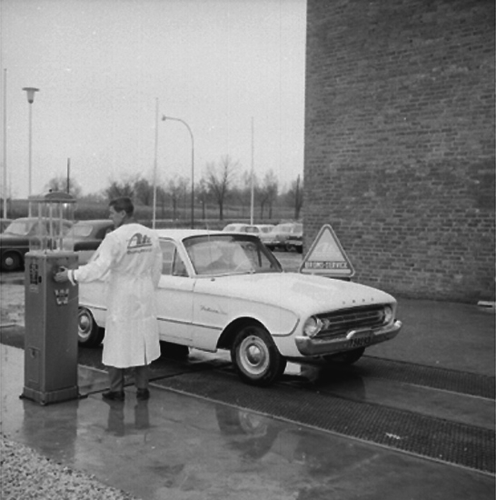Ate Lockheed broms-service, bilverkstad, exteriör, en man.
