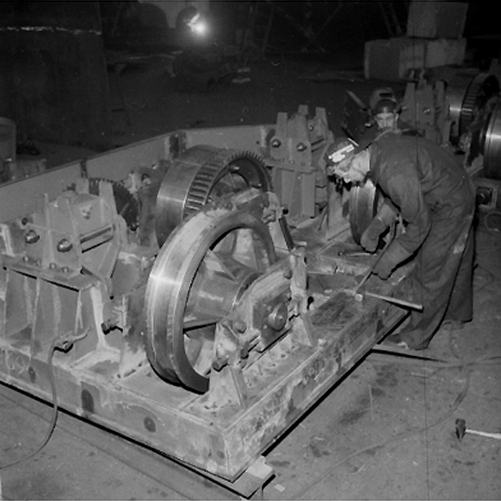 Vretstorpsverken, verkstadsinteriör med arbetare.