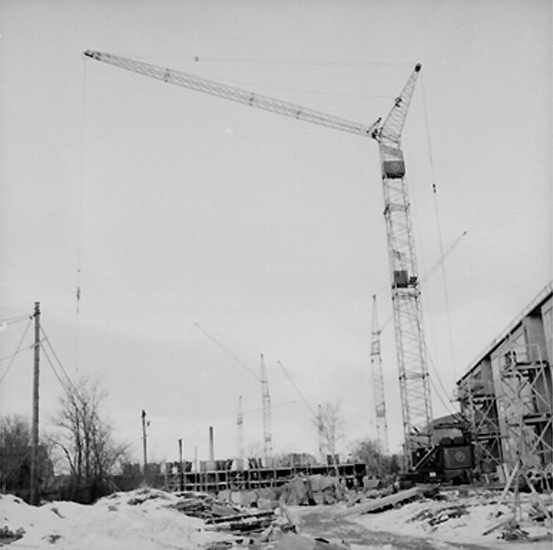 Titel: Byggnadsarbete, lyftkran. Örebro söder.