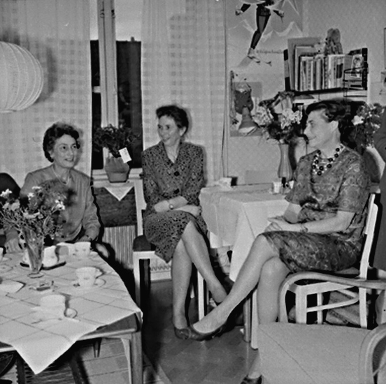 Titel: Rumsinteriör, släktgrupp tre kvinnor. Anna-Maja Löfqvists 50-årsdag.