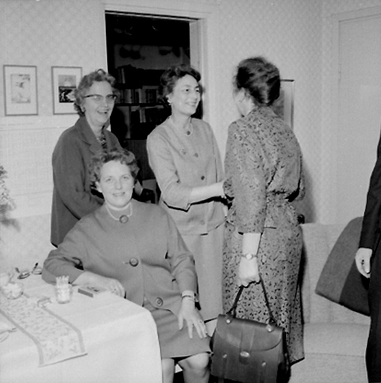 Rumsinteriör, släktgrupp fyra kvinnor.