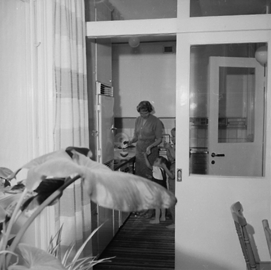 White Arkitektkontor AB, lägenhetsinteriör, tre personer.