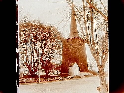 Sköllersta kyrka, klockstapeln och stigluckan.