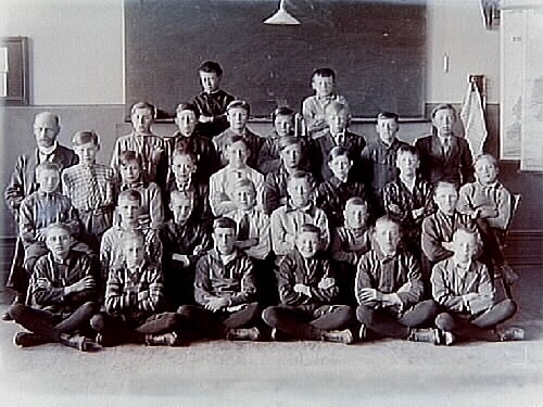 Västra skola, klassrumsinteriör, 23 skolpojkar, klass 6D, rum 6.