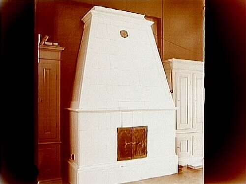 Örebro Slotts restaurering, gammal kakelugn i sensationssalen.