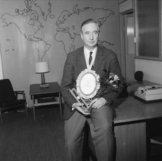 Titel: Wigrell & Co, kontorsinteriör, en man. Prisutdelning.