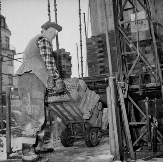 Byggnadsarbete, en man.