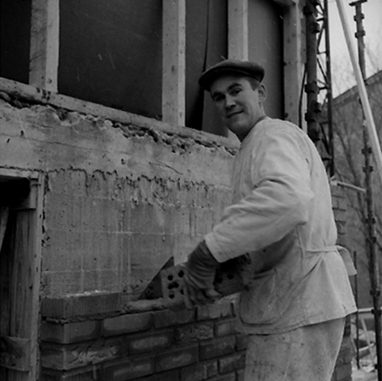 Byggnadsarbete, en man.
