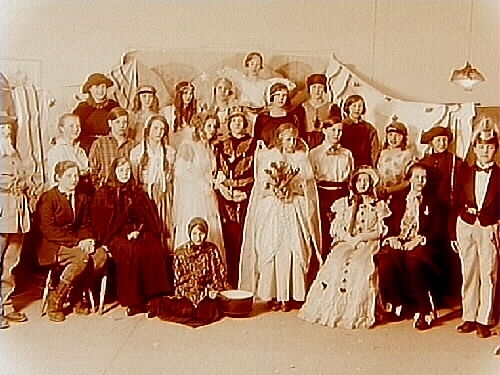 Risbergska skolan, teatergrupp, 24 utklädda flickor.