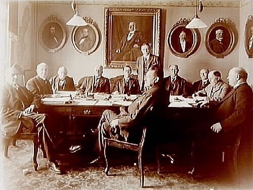 Rumsinteriör med Hypoteksföreningens styrelse, elva herrar.