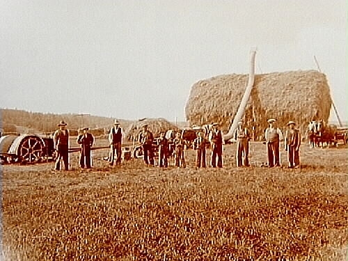 Sörby gård, höbärgning, höfläkt, traktor, en motorcykel.