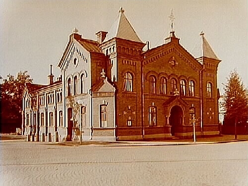 Vasakyrkan, kyrkobyggnad med fasad i rött tegel. Fasaden i nyromantik har två torn i norr och en rik dekor med rundbågiga friser, fönster och portal.