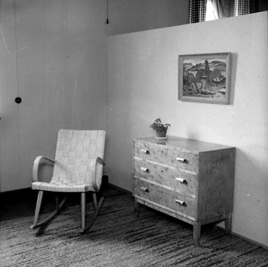 Konsum Möbler, affärsinteriör, byrå och stol.