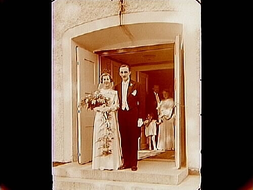 Bröllop, en av döttrarnas vigsel i Almby kyrka, brudpar.