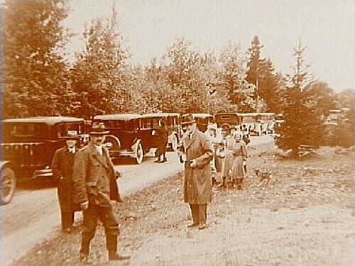 Naturbild. Personer och bilar.