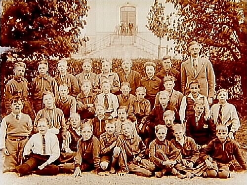 Almby skola, 31 skolpojkar med lärare Åke Eriksson.