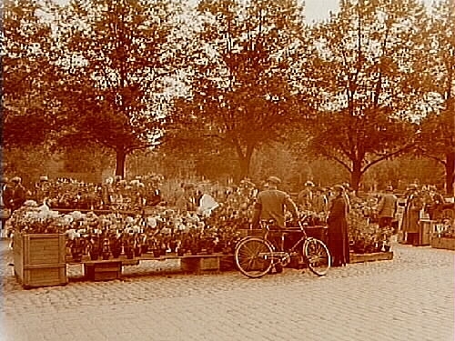 Blomsterstånd på morsdag på Trädgårdstorget.