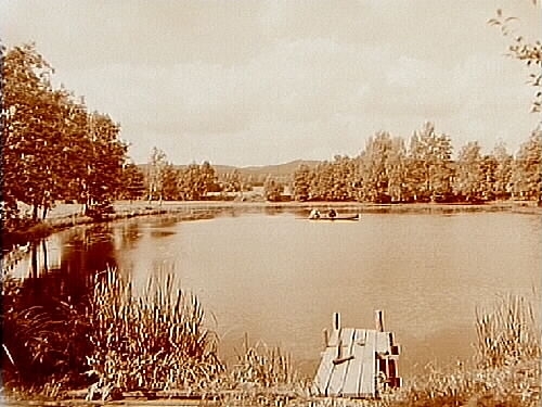 Tröskverksdammen, tre män i en eka.