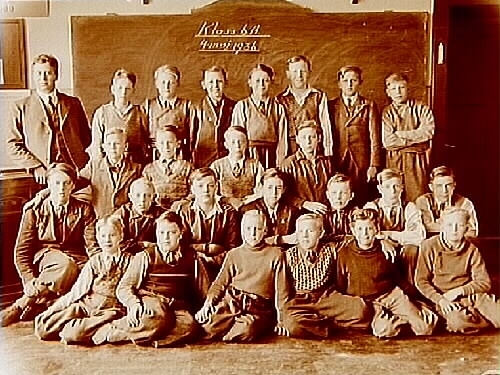 Olaus Petriskolan, klassrumsinteriör, 24 pojkar med lärare C.R. Nilsson, klass 6A, sal 19.