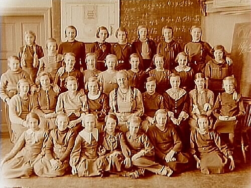 Vasaskolan, klassrumsinteriör, 35 flickor med lärarinna fru Dahl, sal 15.