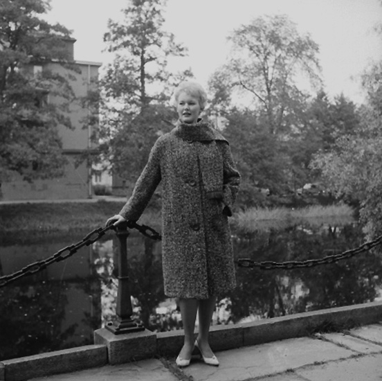 En kvinna. Kläderna från Konsum Damkonfektion.