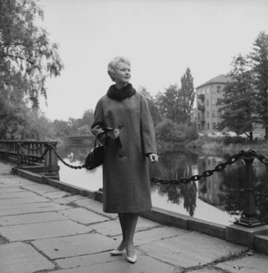 En kvinna. Kläderna från Konsum Damkonfektion.