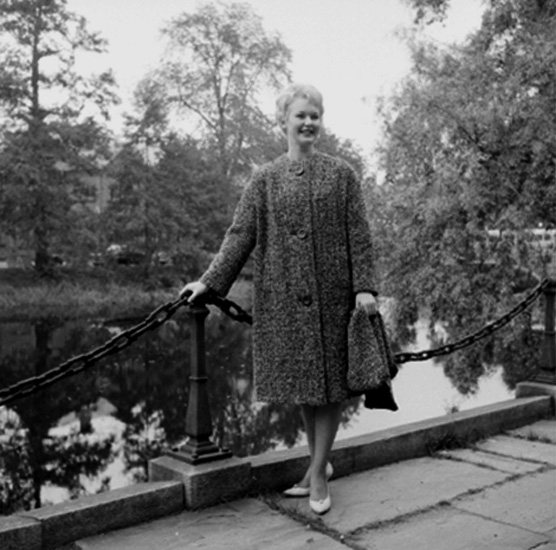 En kvinna. Kläderna från Konsum Damkonfektion.