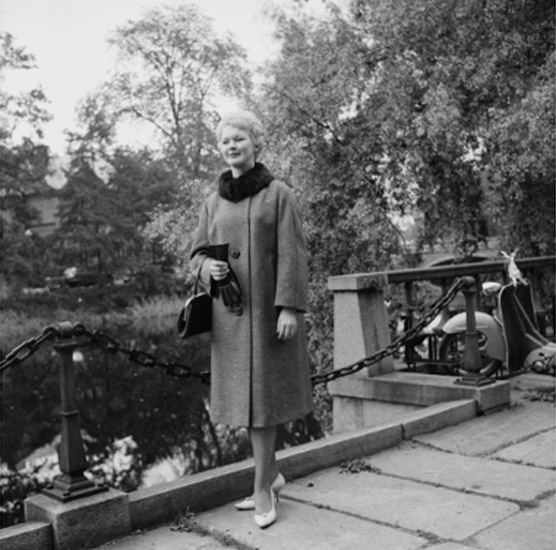 En kvinna. Kläderna från Konsum Damkonfektion.