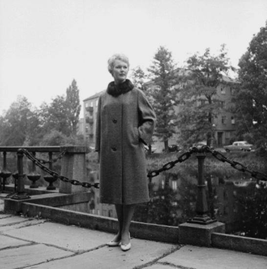 En kvinna. Kläderna från Konsum Damkonfektion.