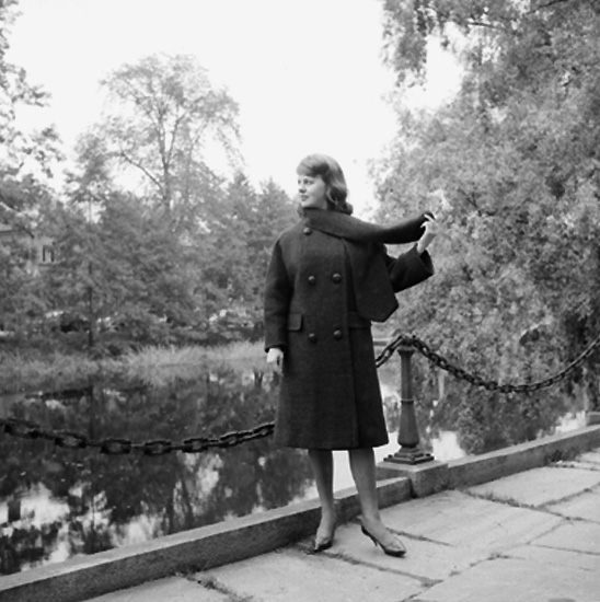 En kvinna. Kläderna från Konsum Damkonfektion.