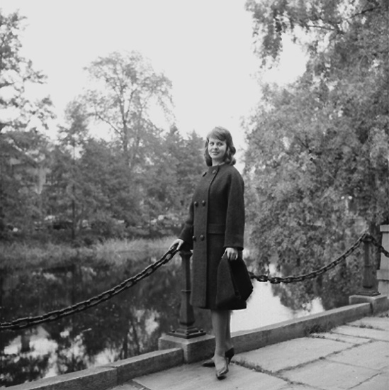 En kvinna. Kläderna från Konsum Damkonfektion.