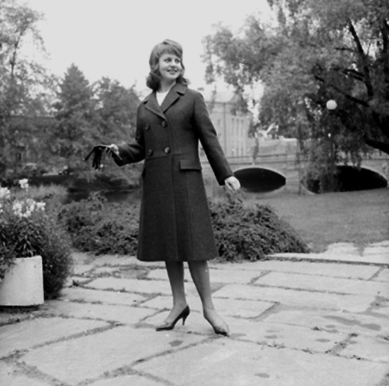 En kvinna. Kläderna från Konsum Damkonfektion.