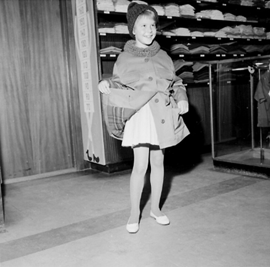 Konsum Damkonfektion, affärsinteriör, en flicka.