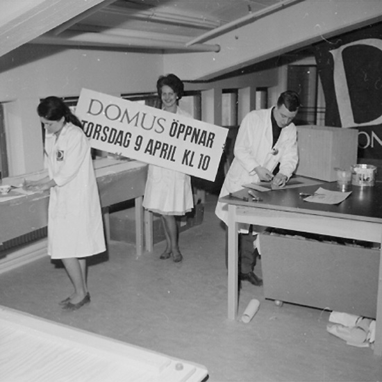Konsum Domus, affärsinteriör, inredningsarbete inför öppnandet.