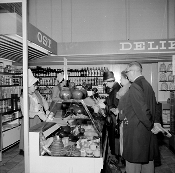Konsum Domus, affärsinteriör, kunder och personal. Holländsk vecka.